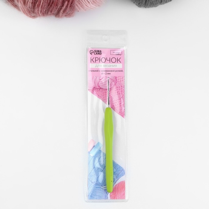 Крючок для вязания, с силиконовой ручкой, d = 2 мм, 14 см, цвет зелёный