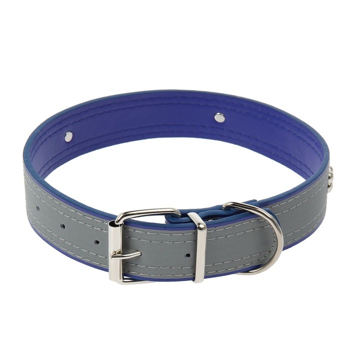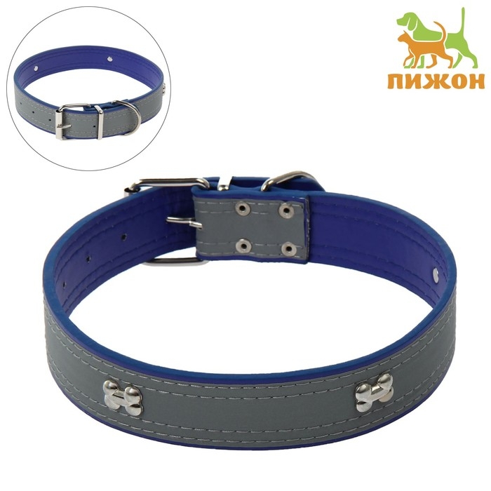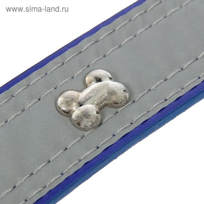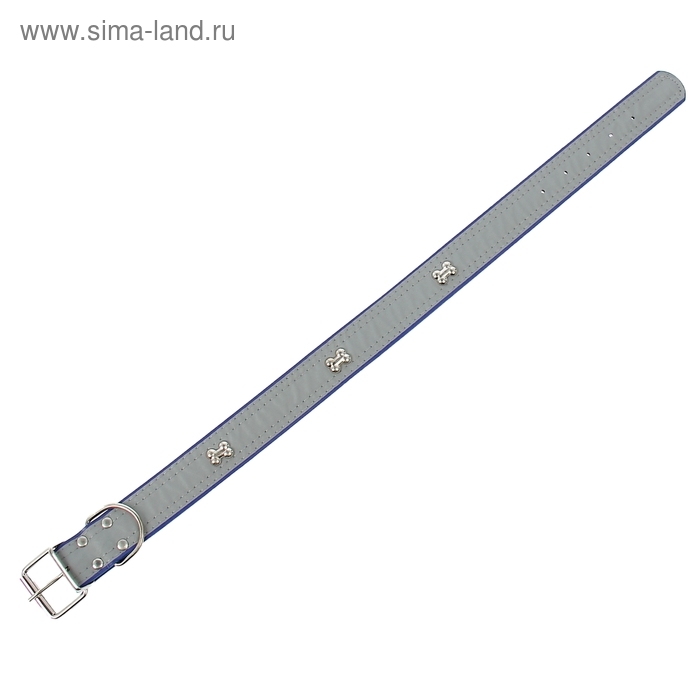 Ошейник широкий с косточками, светоотражающий, 66 х 3,5 см, ОШ 48-58 см, синий