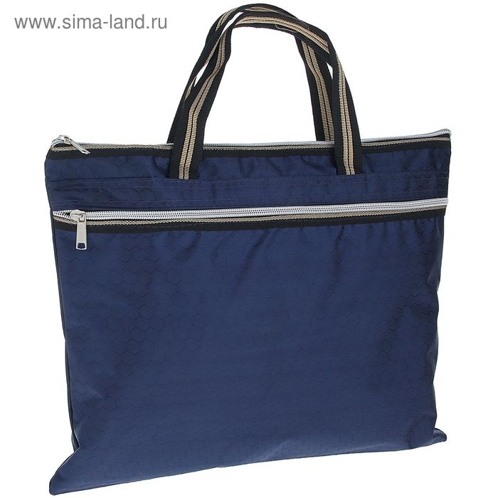 Портфель 1 отделение А4, текстильный, на молнии, с ручками, с карманом, синий