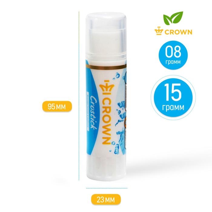 Клeй-карандаш 15 г Crown PVP, кристально-чистый
