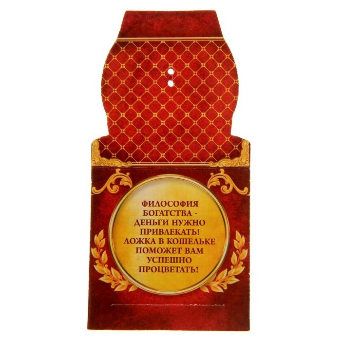 Кошельковый талисман: ложка загребушка «Денежная», 4,6 х 1,2 см. — изделие, которое будет защищать и приумножать ваши доходы. Чтобы активировать его, положите сувенир в кошелёк или сумочку и произнесите несложный заговор, указанный на упаковке.