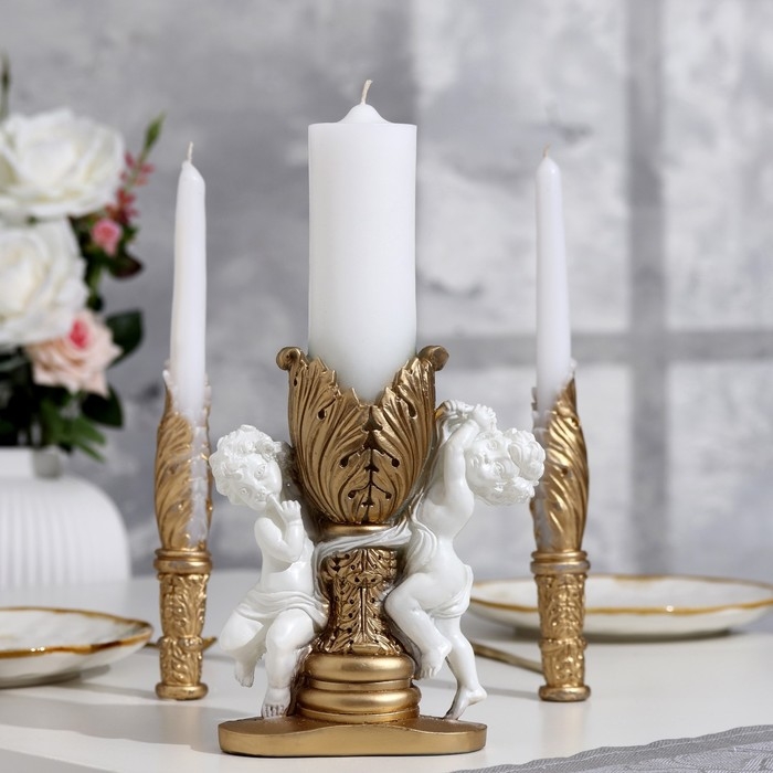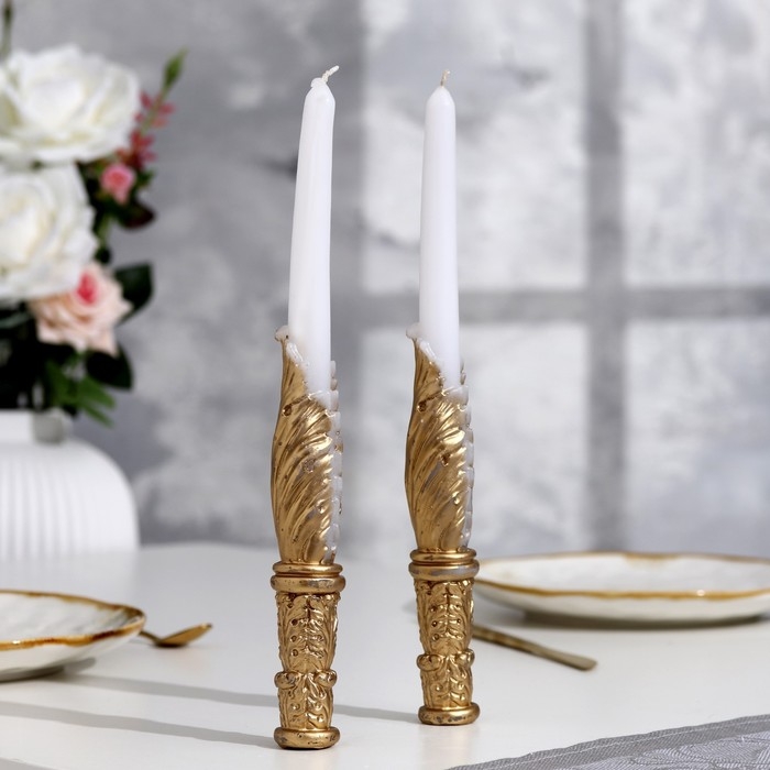 Набор свечей свадебных "Два ангела", 27,5х3 см, бело-золотой, родительские