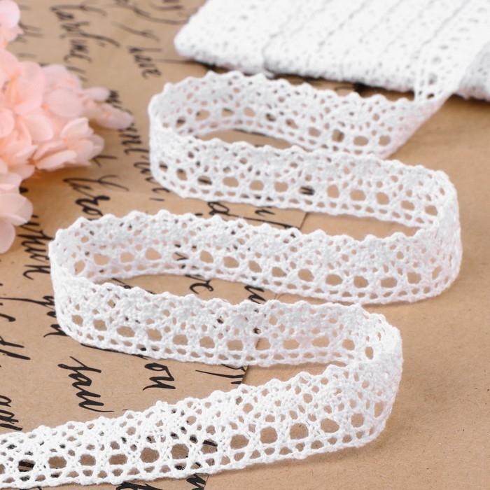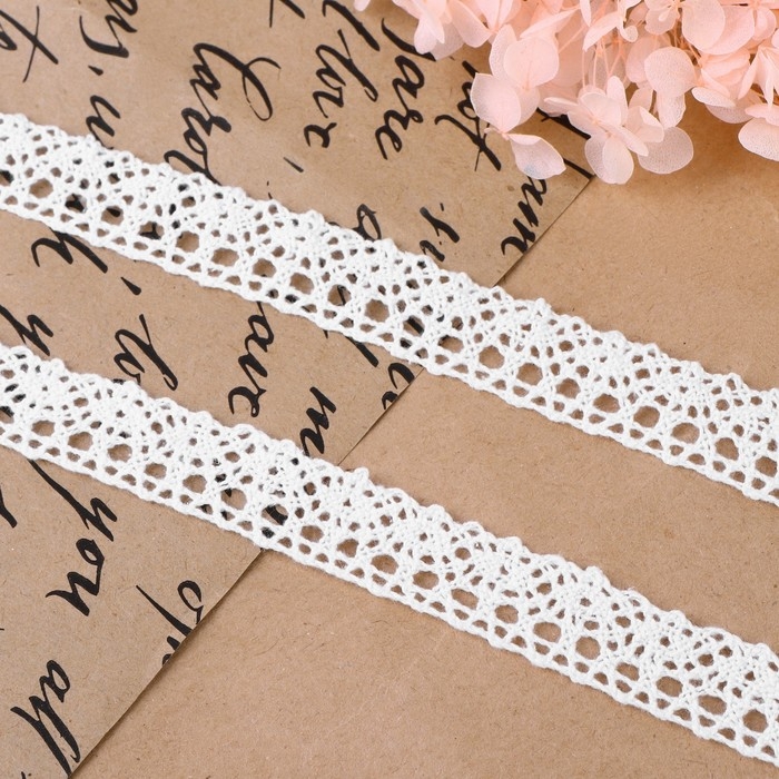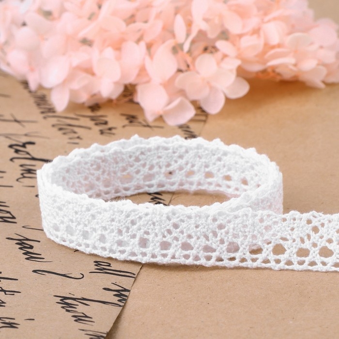 Кружево гипюровое, 15 мм × 14 ± 1 м, цвет белый