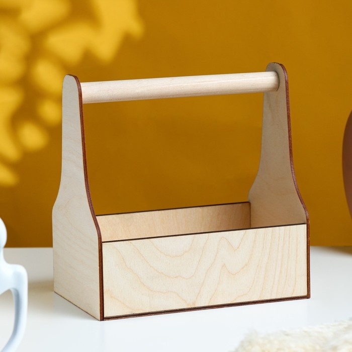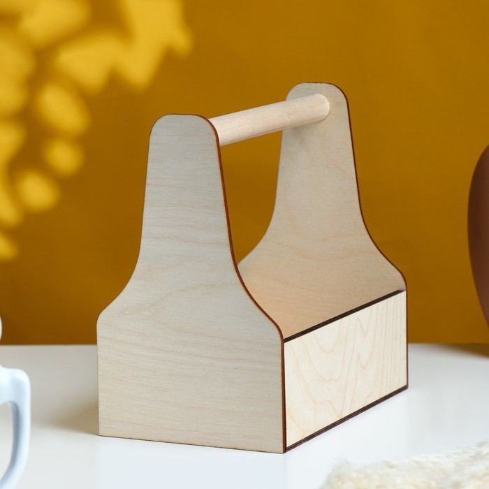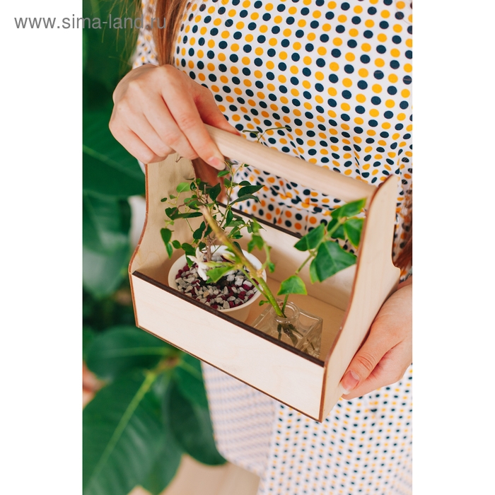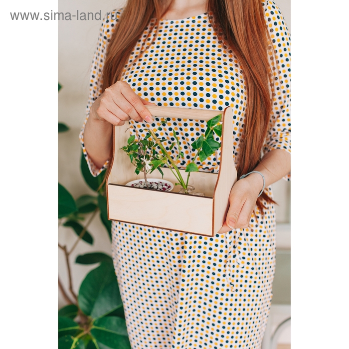 Кашпо деревянное 20×12.5×20 см Стелла Моно, с ручкой, натуральный Дарим Красиво
