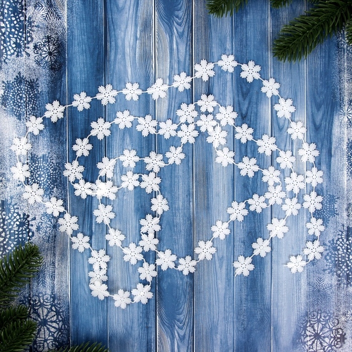 Бусы на ёлку 1,8 м "Белые снежинки" белый