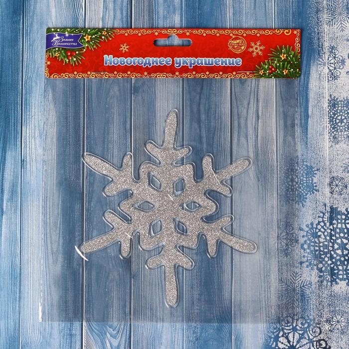 Наклейка на стекло "Снежинка" 15х15 см, серебро