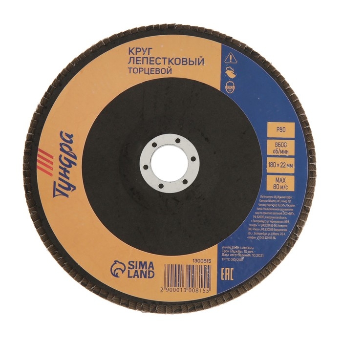 Круг лепестковый торцевой ТУНДРА, 180 х 22 мм, Р80