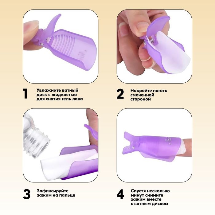 Познакомьтесь с идеальным помощником для быстрого и комфортного удаления гель-лака — набором зажимов, который станет вашим незаменимым аксессуаром для ухода за ногтями. Эти зажимы, выполненные из пластика, обеспечивают надежное и удобное использование, помогая вам легко и быстро справляться с задачей снятия гель-лака в домашних условиях.