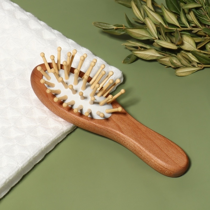Расчёска-мини массажная, деревянная, 4 × 11,5 см, цвет «светлое дерево»