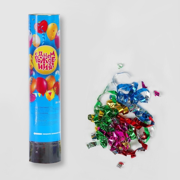 Хлопушка пружинная «С Днём Рождения», шарики, конфетти, фольга, серпантин, 20 см