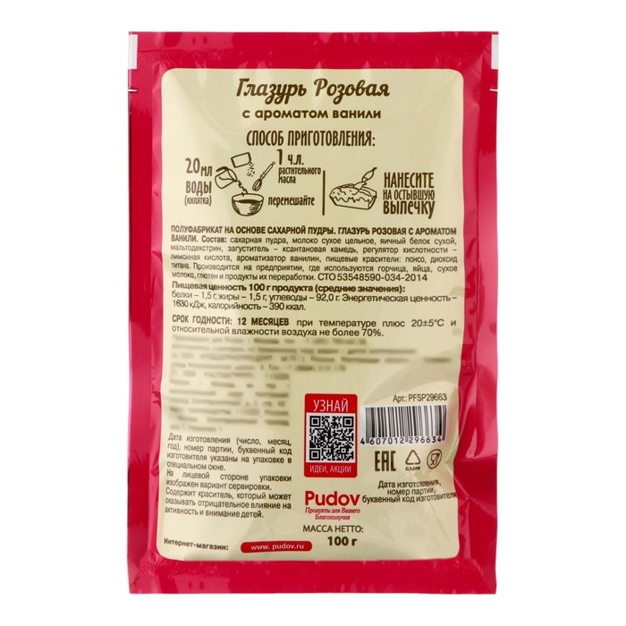 Сахарная глазурь «С. Пудовъ», розовая, 100 г