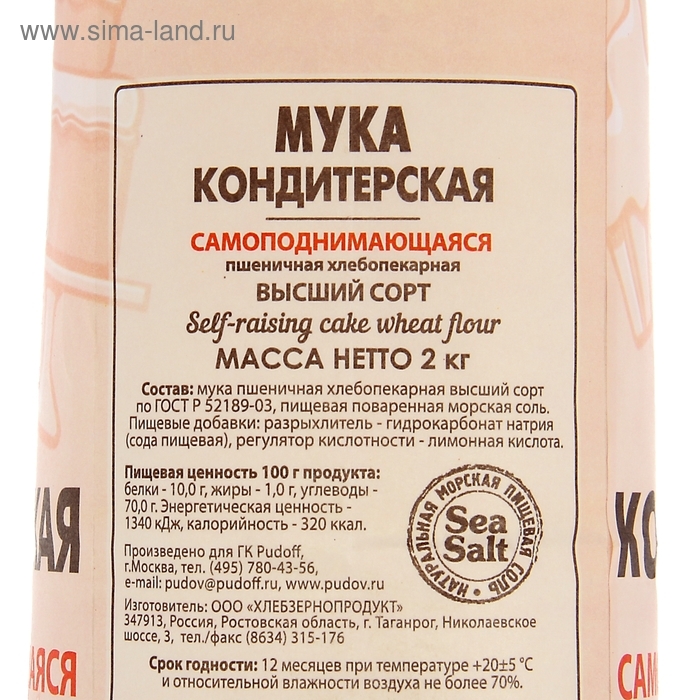 Мука кондитерская «С. Пудовъ», самоподнимающаяся, 2 кг