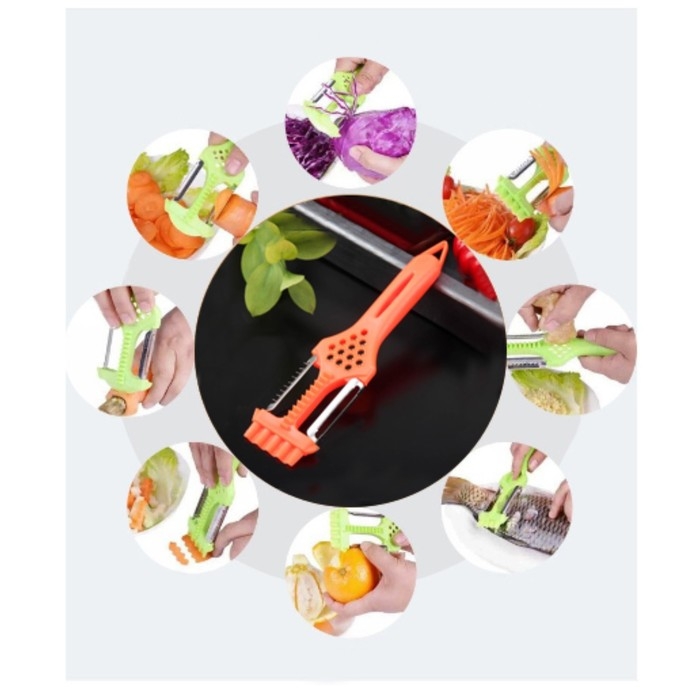 Овощерезка - рыбочистка фигурная 2 в 1 с тёркой Доляна, 21,5×6 см, цвет оранжевый