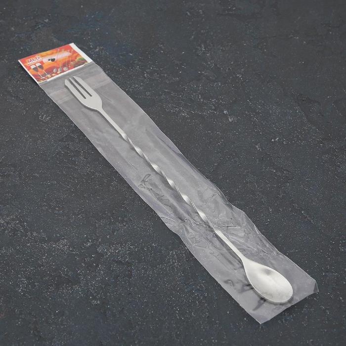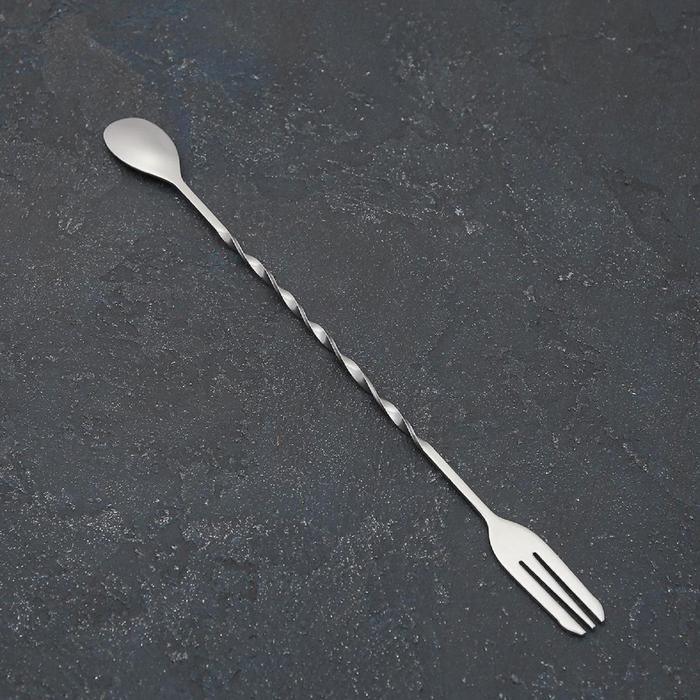 Ложка барная из нержавеющей стали с вилкой, длина 32,5 см, цвет серебряный