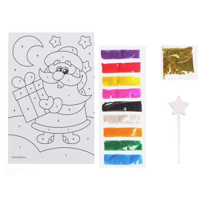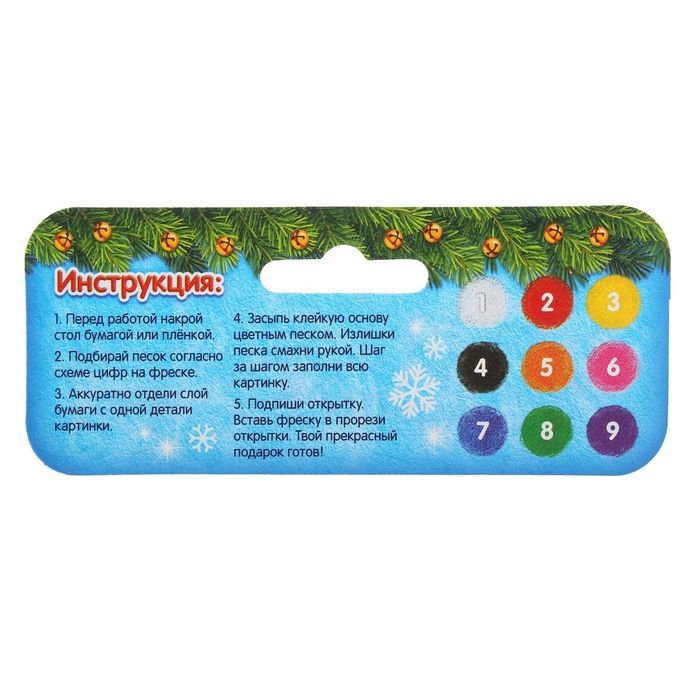 Этот набор предназначен для создания праздничной фрески-открытки, которую можно будет потом подарить близкому человеку. Шедевр из песка — это игровое и художественное занятие, способствующее развитию чувства гармонии, ловкости рук и креативности. Представьте, как ребёнок будет гордиться своей работой и возможностью преподнести такой презент!