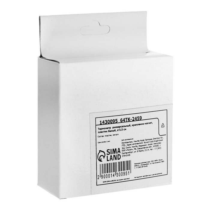 Термометр универсальный Luazon, механический, крепление магнит, d=5.5 см, белый