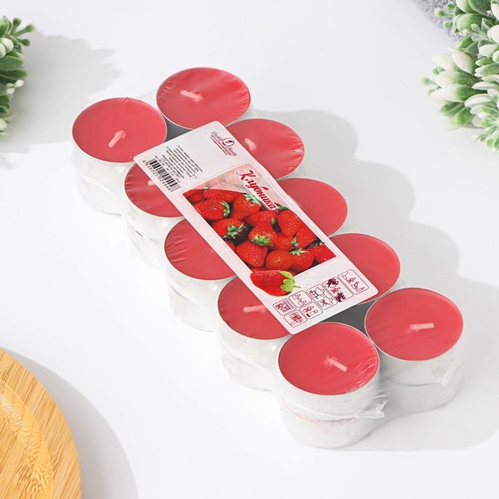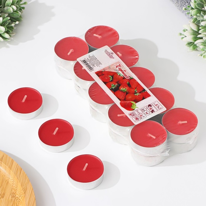 Набор чайных свечей ароматических в термоусадке "Клубника", 3,8х1,6 см, 3,5 ч, 12 г, 20 штук