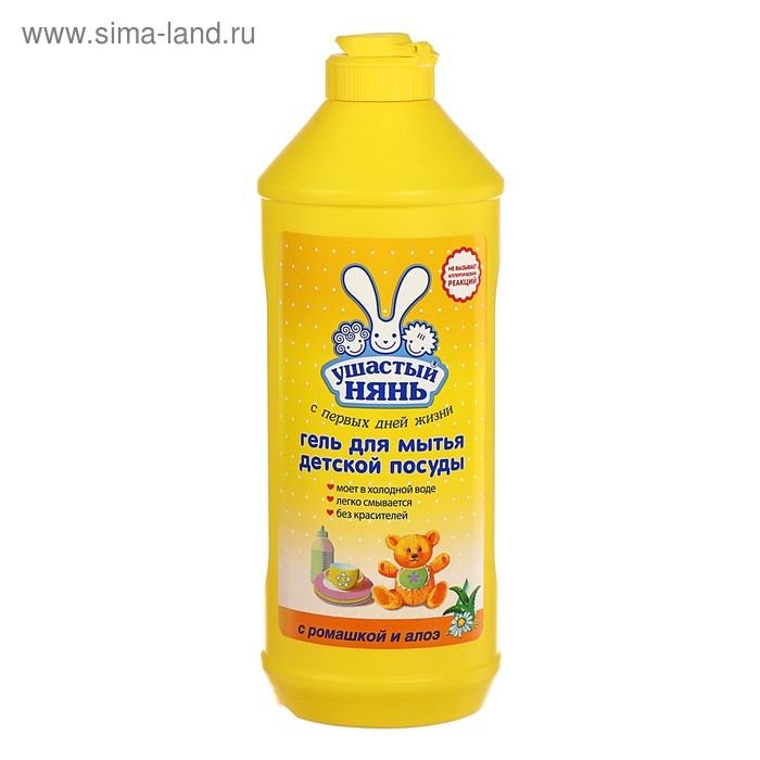 Используйте специальное средство «Ушастый нянь» для мытья детской посуды, бутылочек из стекла и пластика, сосок из латекса и силикона, а также любых поверхностей, с которыми соприкасается ребёнок с первых дней жизни.