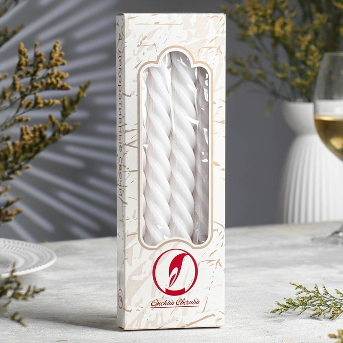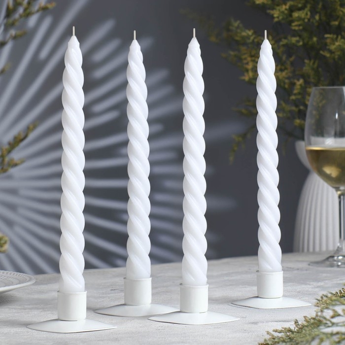 Набор свечей витых, 2,3х 24,5 см, 5 ч, 50 г, 4 штуки, белый