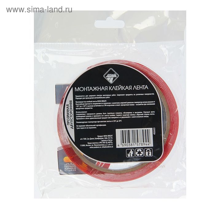 Клеящая лента Nova Bright — это крепёжный элемент, который способен выдерживать большие нагрузки. Лента не растрескивается, не меняет цвет даже при длительном использовании. Двусторонняя клейкая поверхность идеальна для соединения изделий из различных материалов. Подходит для проведения автомобильных работ.