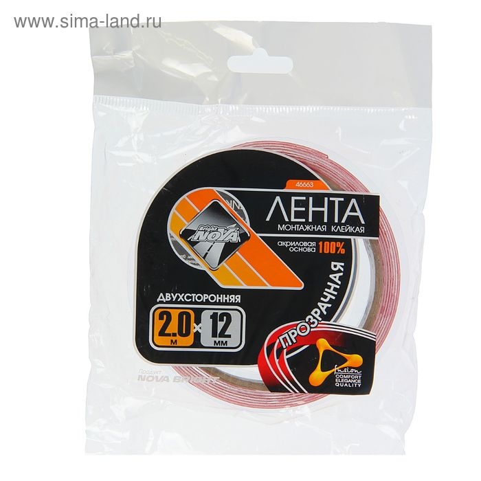 Клейкая лента Nova Bright, прозрачная, двусторонняя, акриловая, 12 мм х 2 м