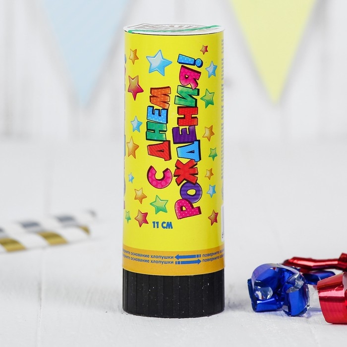 Пружинная хлопушка сделает любое событие ярким и станет эффектным заверешением вашего праздника! Поверните специально обозначенную часть, и она выстрелит серпантином, конфетти и фольгой. Такой фейерверк можно безопасно утроить дома и на улице — это вовсе не пиротехника. Будьте уверены: ваши поздравления будут услышаны! Компактную хлопушку можно взять с собой куда угодно.