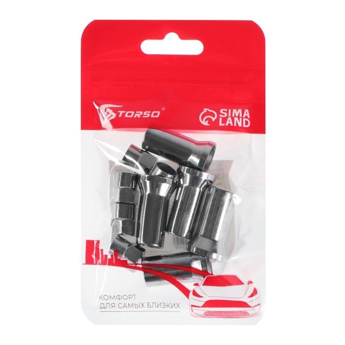 Колпачок на автомобильный вентиль TORSO, хром, набор 4 шт