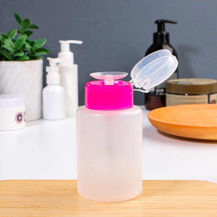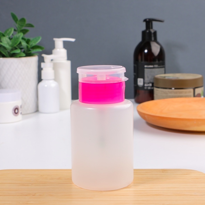 Эта компактная емкость идеально подходит для лосьонов, жидкостей для снятия макияжа или маникюрных средств. Уникальная система дозирования с помпой обеспечивает точное распределение содержимого, исключая проливание и перерасход продукта. Просто положите ватный диск на дозатор и нажмите – средство аккуратно распределится, облегчая ежедневные процедуры ухода.