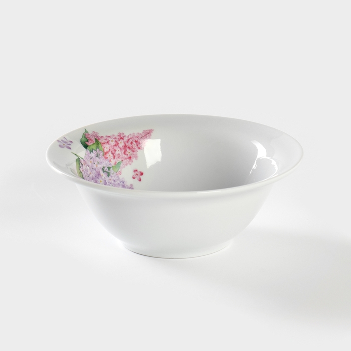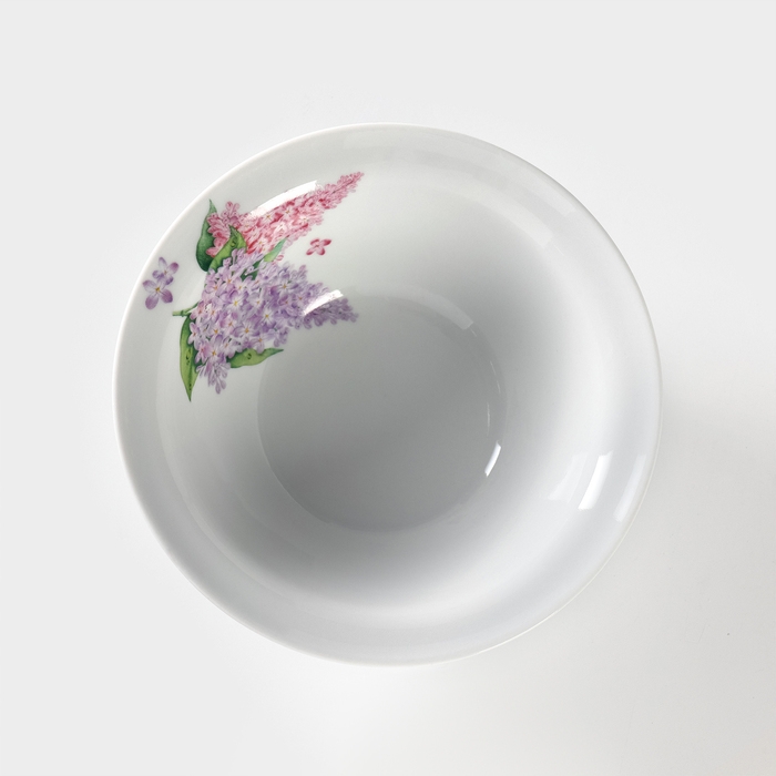 Тарелка фарфоровая «Сирень», 550 мл, d=17 см, цвет белый