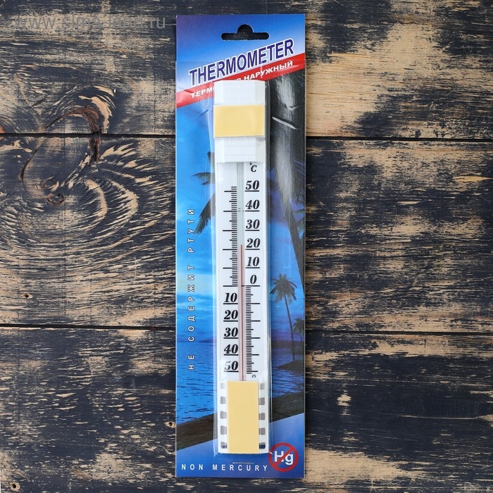 Термометр, градусник уличный, на окно, на липучке, от -50°С до +50°С, 25 х 4 см