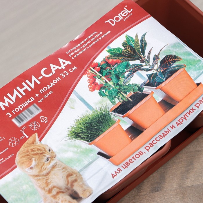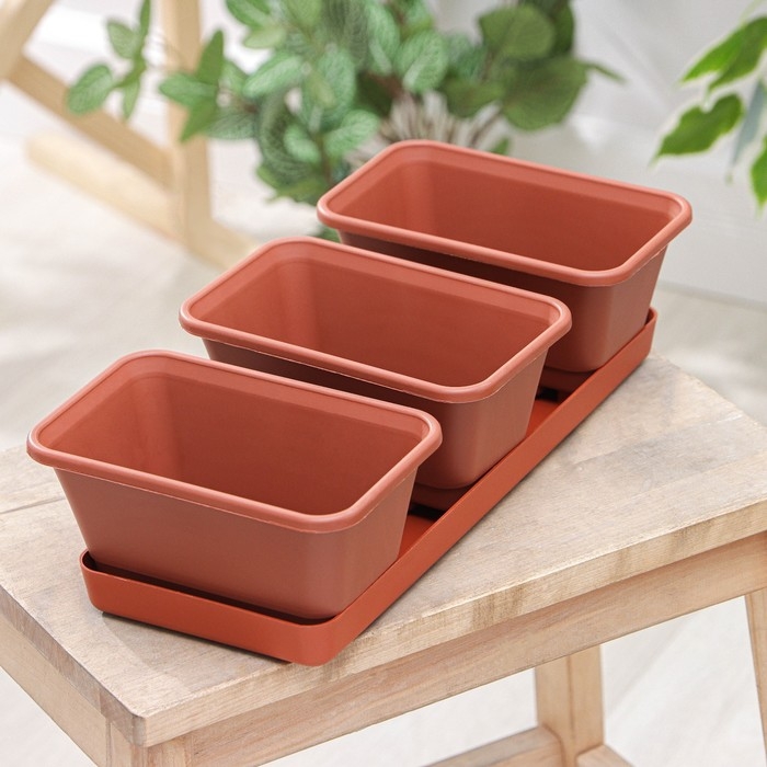 Набор горшков для цветов с поддоном Darel plastic, 750 мл, 33 см, 3 шт, цвет терракотовый