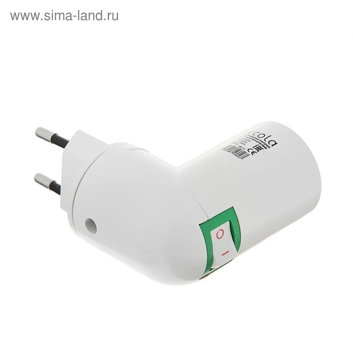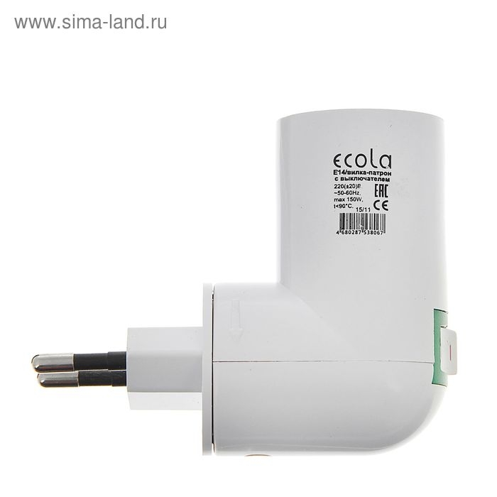 Переходник Ecola, вилка-патрон, E14, 60 х 83 мм, с выключателем, белый