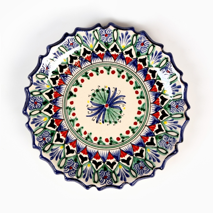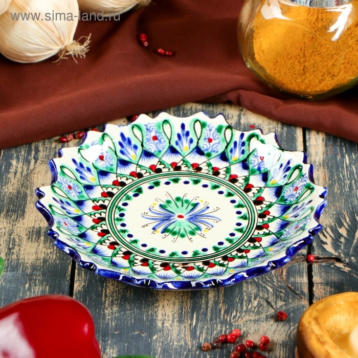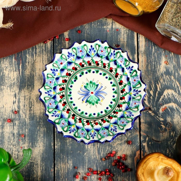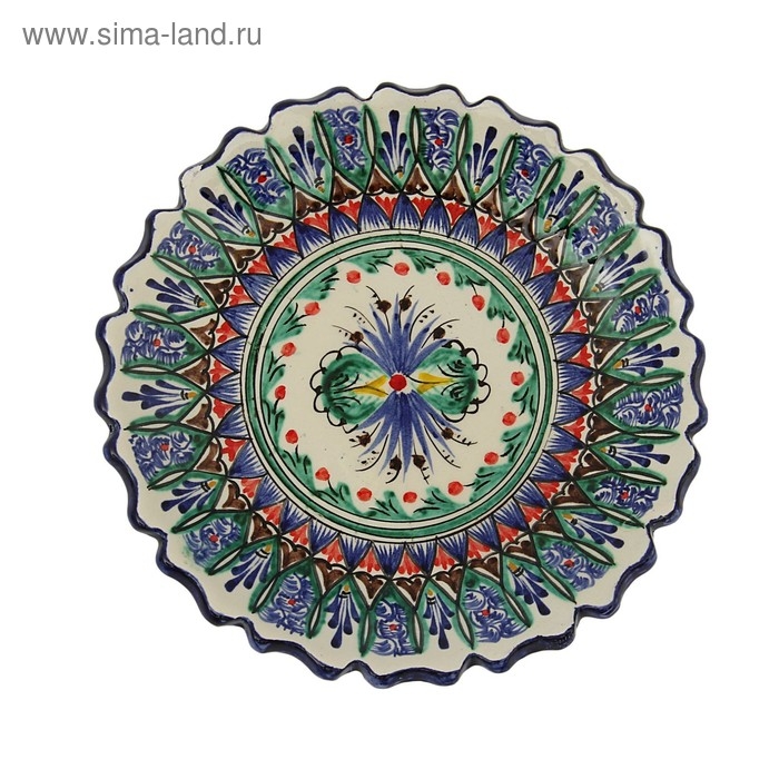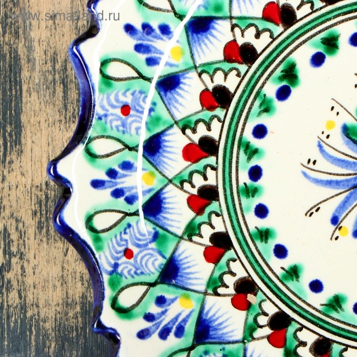 Тарелка Риштанская Керамика "Цветы", синяя, рельефная, 25 см