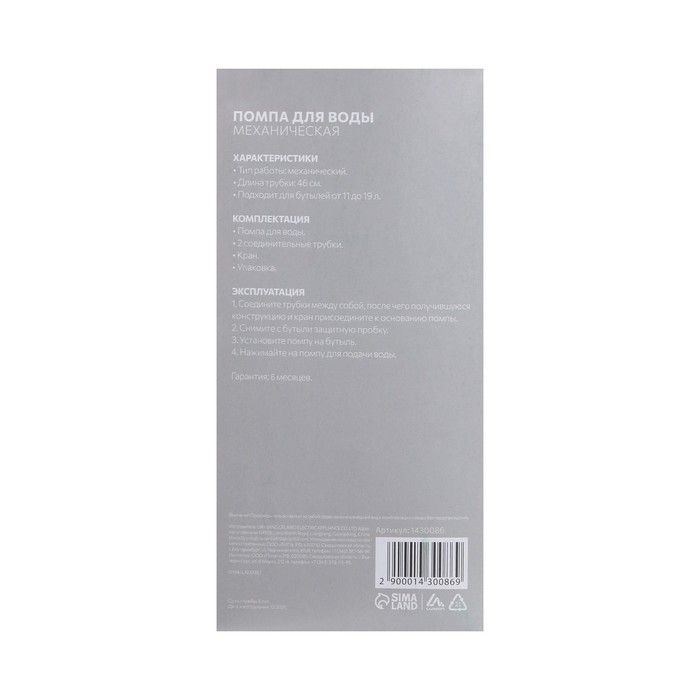 Помпа для воды Luazon Norma, механическая, большая, под бутыль от 11 до 19 л, голубая