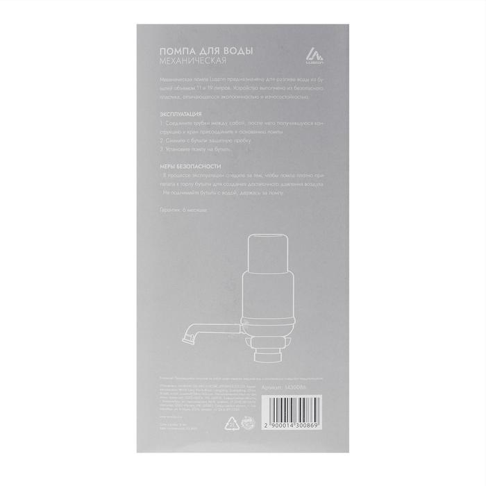 Помпа для воды Luazon, механическая, прозрачная, под бутыль от 11 до 19 л, голубая