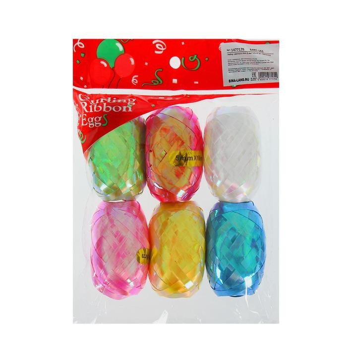 Лента упаковочная перламутровая, ассорти, набор 6 шт., 0,5 см х 10 м