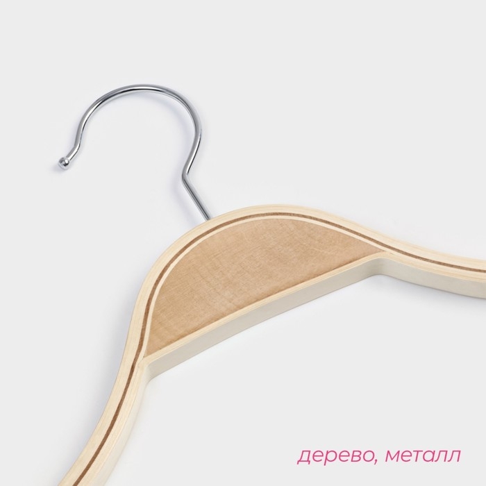 Плечики - вешалка для одежды Доляна, 44×23 см, деревянная сорт А, с перекладиной, антискользящее покрытие, цвет светлое дерево