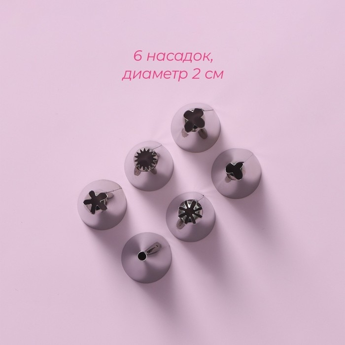 Набор кондитерский Доляна, 7 предметов: мешок 24 см, 6 насадок d=1,8 см, насадки и цвет МИКС