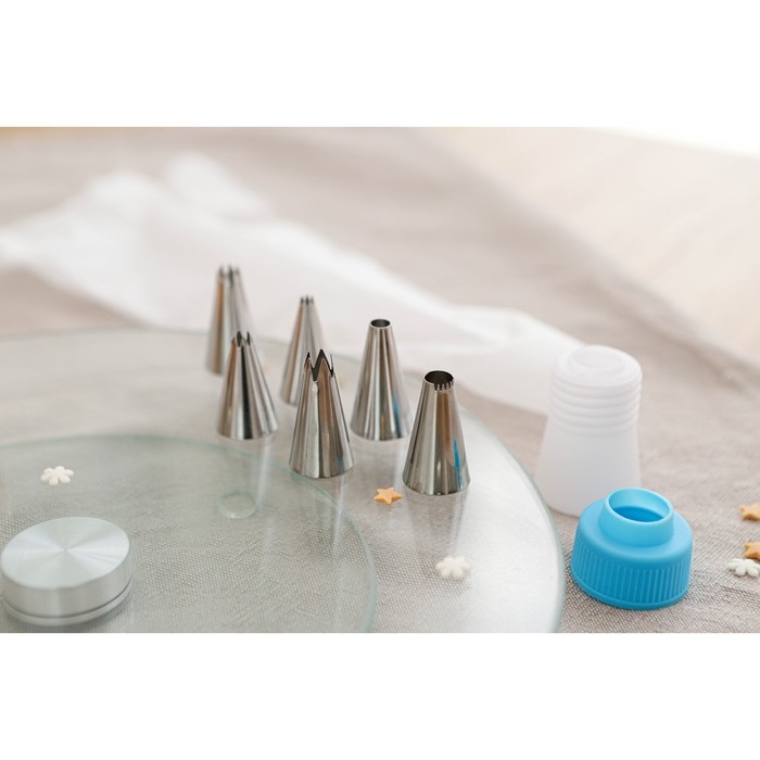 Набор предназначен для украшения выпечки и готовых кондитерских изделий. Наполните мешок кремом, выберите насадку — и приступайте к созданию кулинарного шедевра!