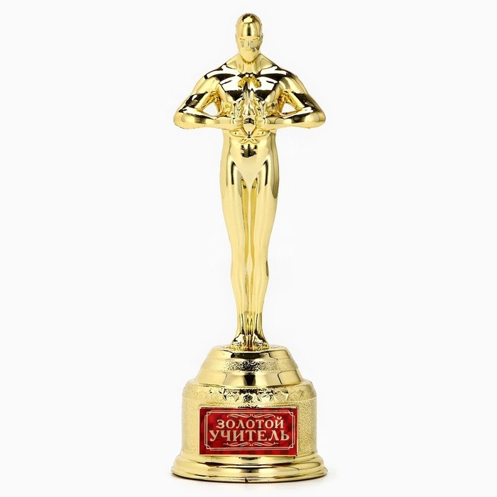 Кубок наградная фигура учителю «Золотой учитель», оскар, золото, 18 х 6,3 см