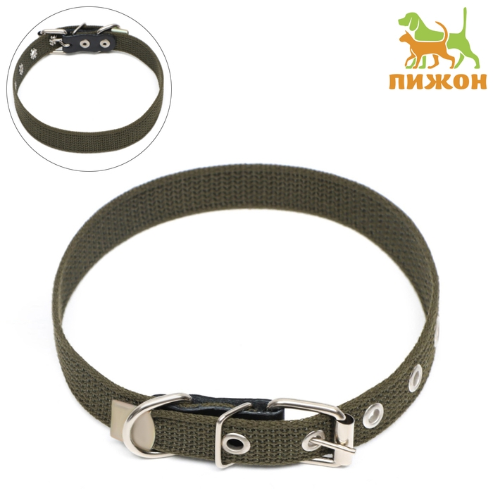 Ошейник брезентовый однослойный, 50 х 2 см, ОШ 25-35 см, хаки