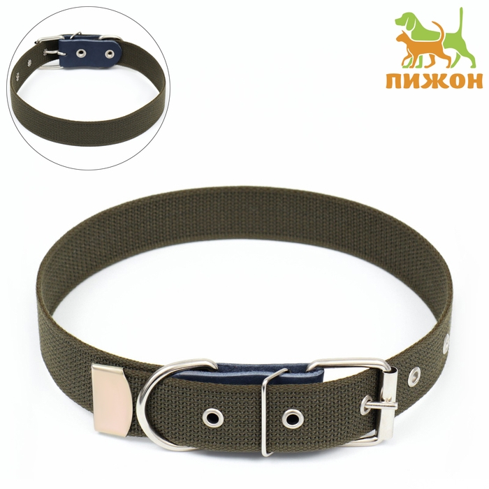 Ошейник брезентовый на фетре, 62 х 2,5 см, ОШ 30-55 см, тёмно-зелёный