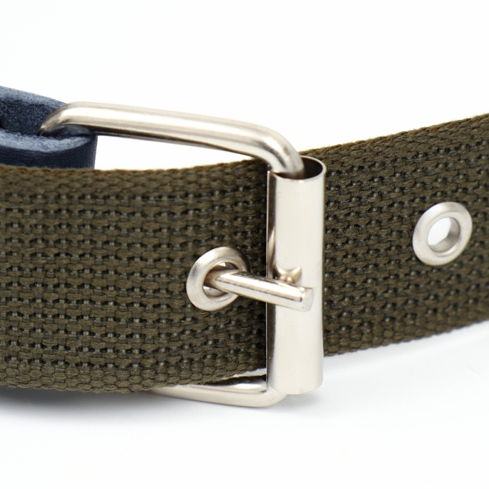 Ошейник полностью изготовлен из качественных материалов, таких как хлопок и полиэстер. Ошейник для собаки из брезента имеет в составе хлопок и полиэстер в соотношении 50% - 50%, что обеспечивает ошейнику высокую прочностью и долговечность.