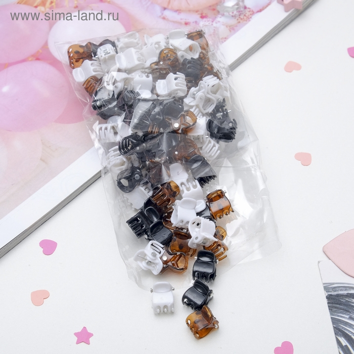Краб для волос "Мини" (набор 100 шт) простой, 1 см, микс