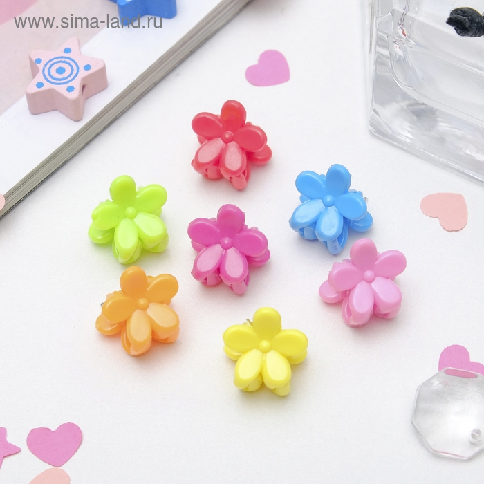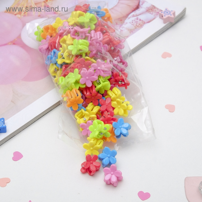 Краб для волос "Мини" (набор 100 шт) цветочек колор, 1 см, микс