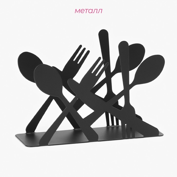 Салфетница Доляна «Приборы», 13,5×4,5×9,5 см, цвет чёрный