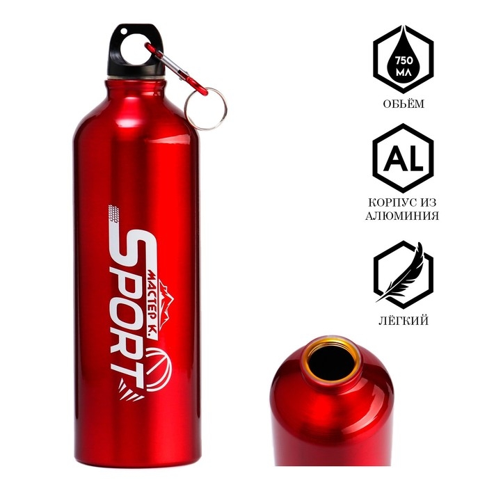 Бутылка для воды, 750 мл, "Мастер К", 24.5 х 7 см, корпус из алюминия