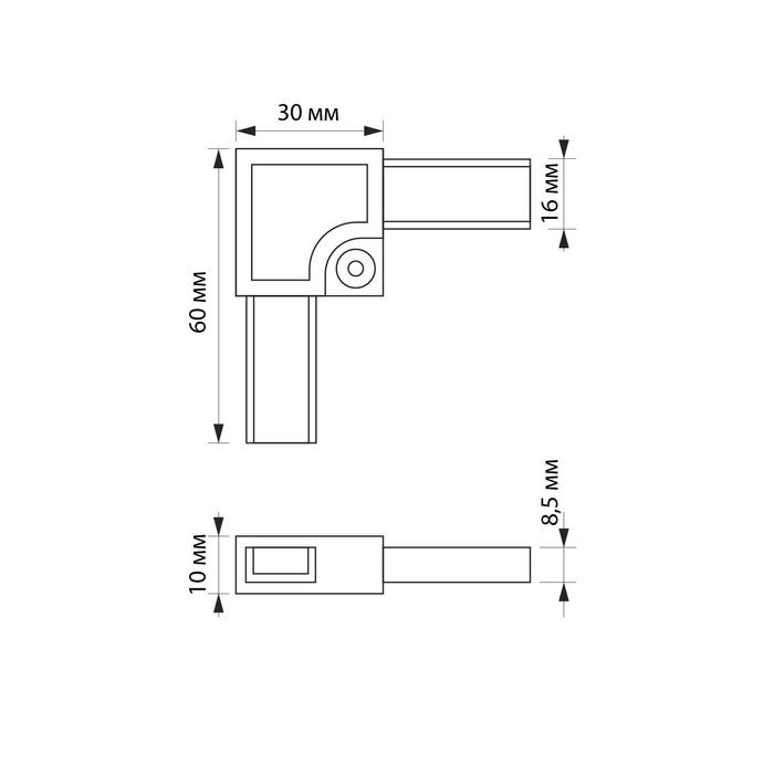 Уголок предназначен для соединения частей профиля рамы москитной сетки.