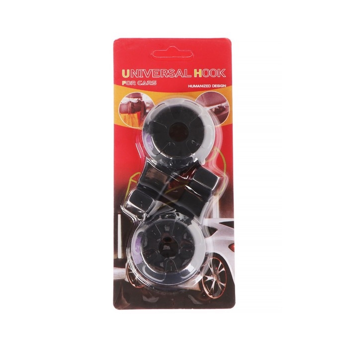 Вешалка-крючок на подголовник, два крючка, пластик, чёрный