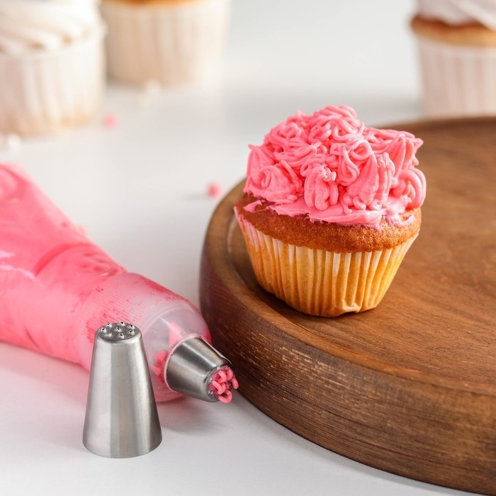 Насадка предназначена для нанесения на десерты необычных украшений из крема. Пользоваться изделием просто: достаточно присоединить его к универсальному кондитерскому мешку.